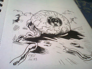 Comme tu l'auras sûrement remarqué, ça fait un bail que je n'ai pas mis à jour mon webcomics ou ce blog. Tu m'en vois profondément désolé. Le fait est que depuis la rentrée je n'ai plus accès à un scanner et les choses ne reviendront pas à la normale avant l'été. Du coup pour éviter de laisser cet endroit dépérir et perdre de toute sa magie (si si) originale je poste quelques dessins que j'ai fait à Newport (South Wales) où je séjourne actuellement. Ce sont des photos prises avec mon téléphone pourri, désolé pour la qualité.